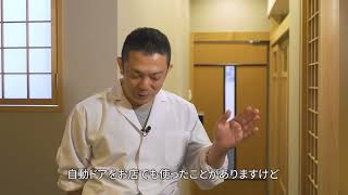 お店の既存引戸をそのまま自動ドア化。従来の雰囲気を保ったまま便利で安全な入り口にリノベーションできました。