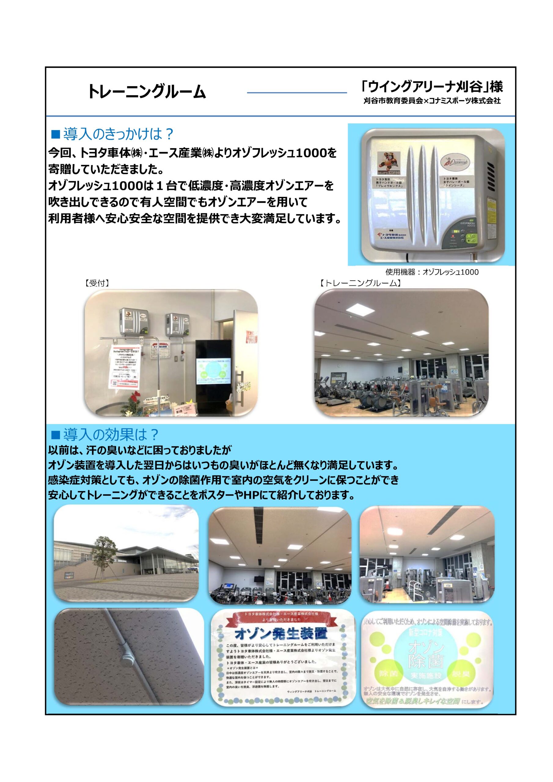 スポーツ施設でのオゾフレッシュ1000ご使用事例