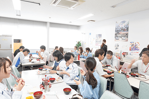 社員が顔を合わせて一緒に食事をします。いろんな部署の人と気軽に話しができる場になっています。
